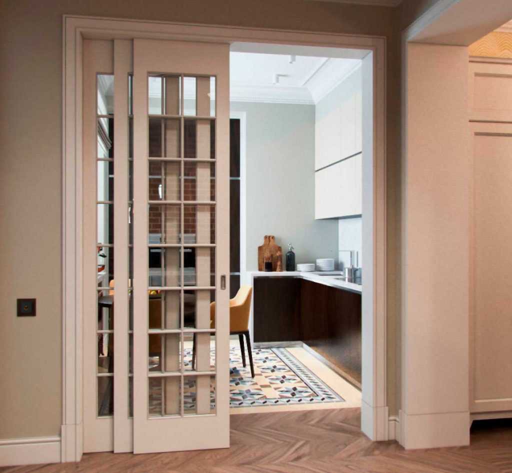 На фото перегородка с распашными дверями