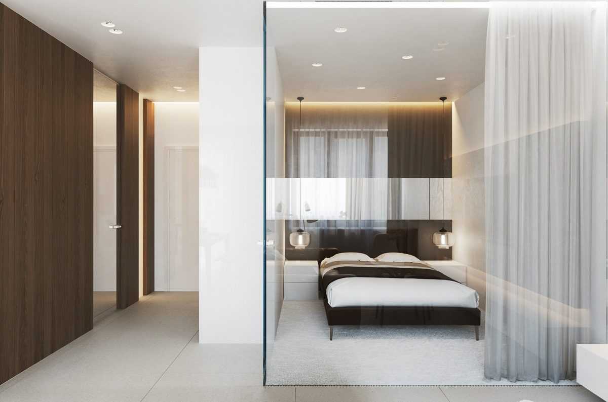 Физически отделить комнату в нише от основной можно шторами, стеклянными ширмами от пола до потолка и любыми другими приемами.