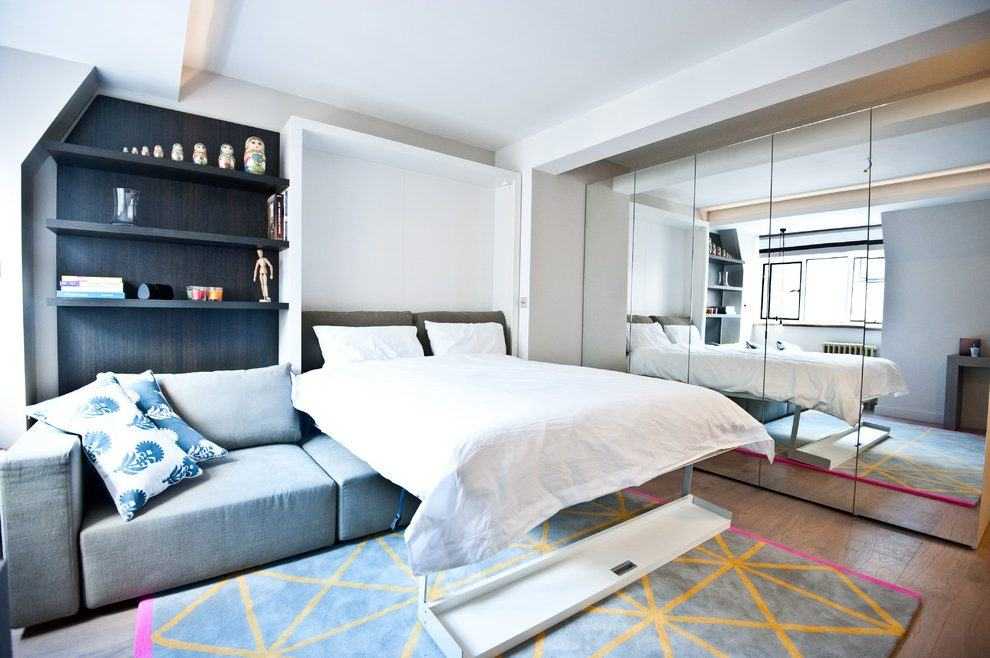Хороший вариант — обставить однокомнатную квартиру мебелью типа трансформера. Её существует множество разновидностей – как для кухни, так и для жилой комнаты. Это может быть кровать-стол, кровать-шкаф для одежды или откидной кухонный стол.