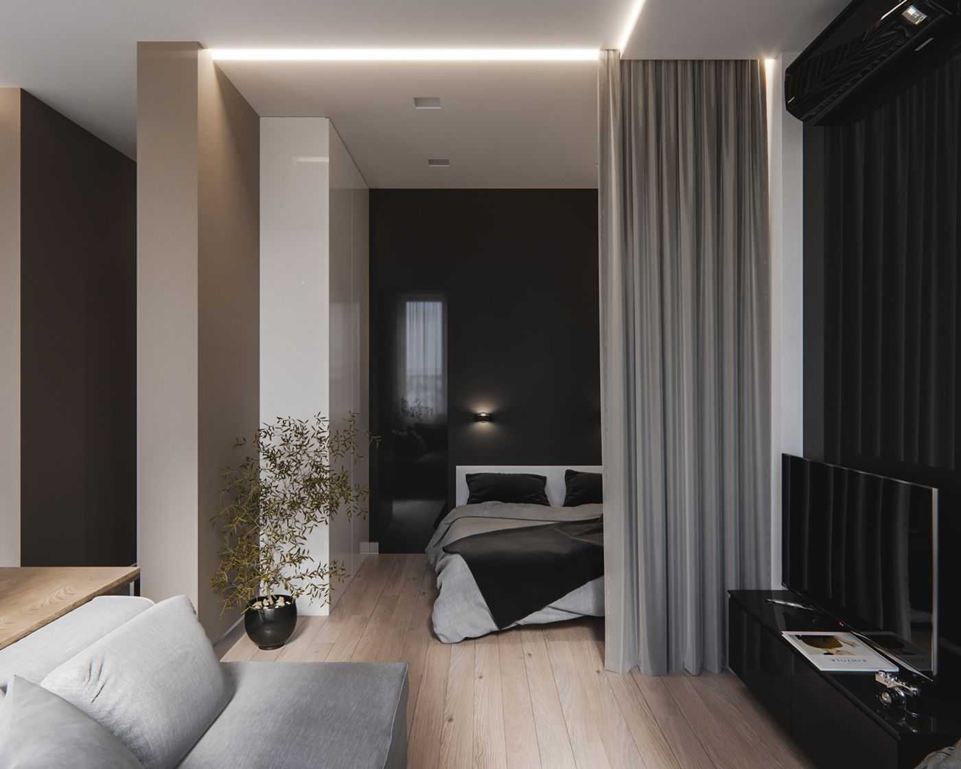 Зонирование однокомнатной квартиры со спальней