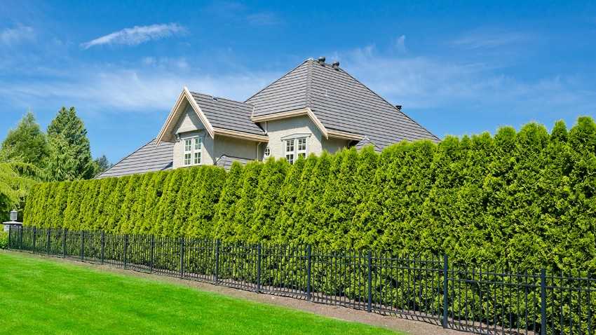 Красивая зеленая изгородь формируется в течении нескольких лет при условии постоянной заботы о растениях.