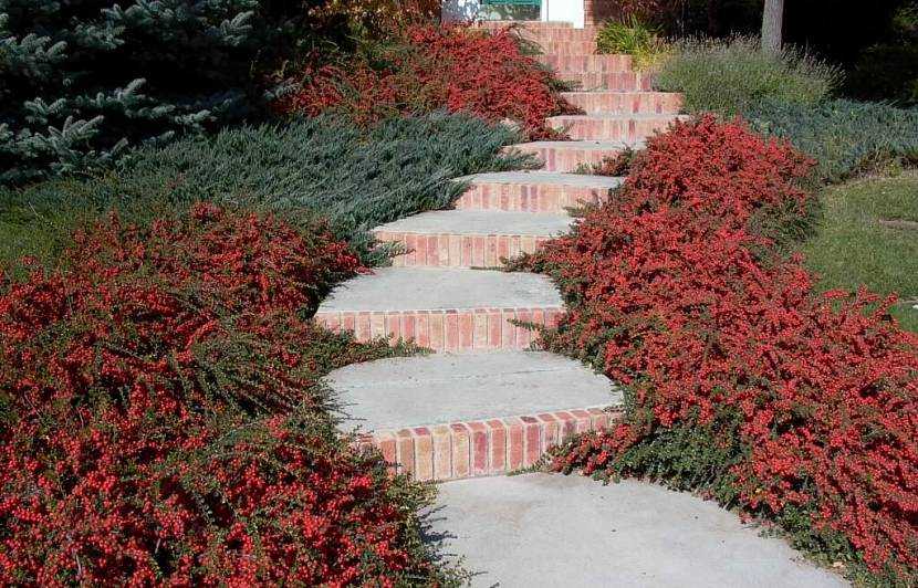 Кизильник в ландшафтном дизайне используют преимущественно для среднего и нижнего ярусов, в зависимости от особенностей вида.