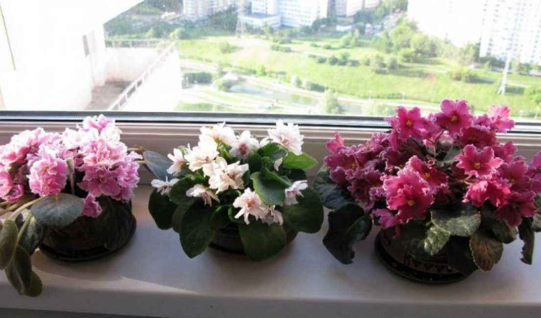 Узамбарские фиалки на подоконнике