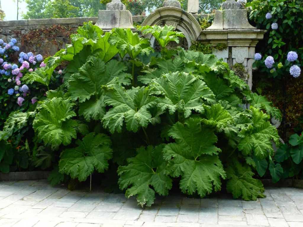Дармера щитовидная является очень красивым декоративно-лиственным растением, относящимся к семейству камнеломковых, листья очень крупные, куст достигает одного метра в высоту, а его цветоносы возвышаются над листвой еще на 50 см. Предпочитает влажные места и отлично себя чувствует на краю водоема. Цветы появляются еще до распускания листьев. Растение не требовательно в уходе и морозостойко.