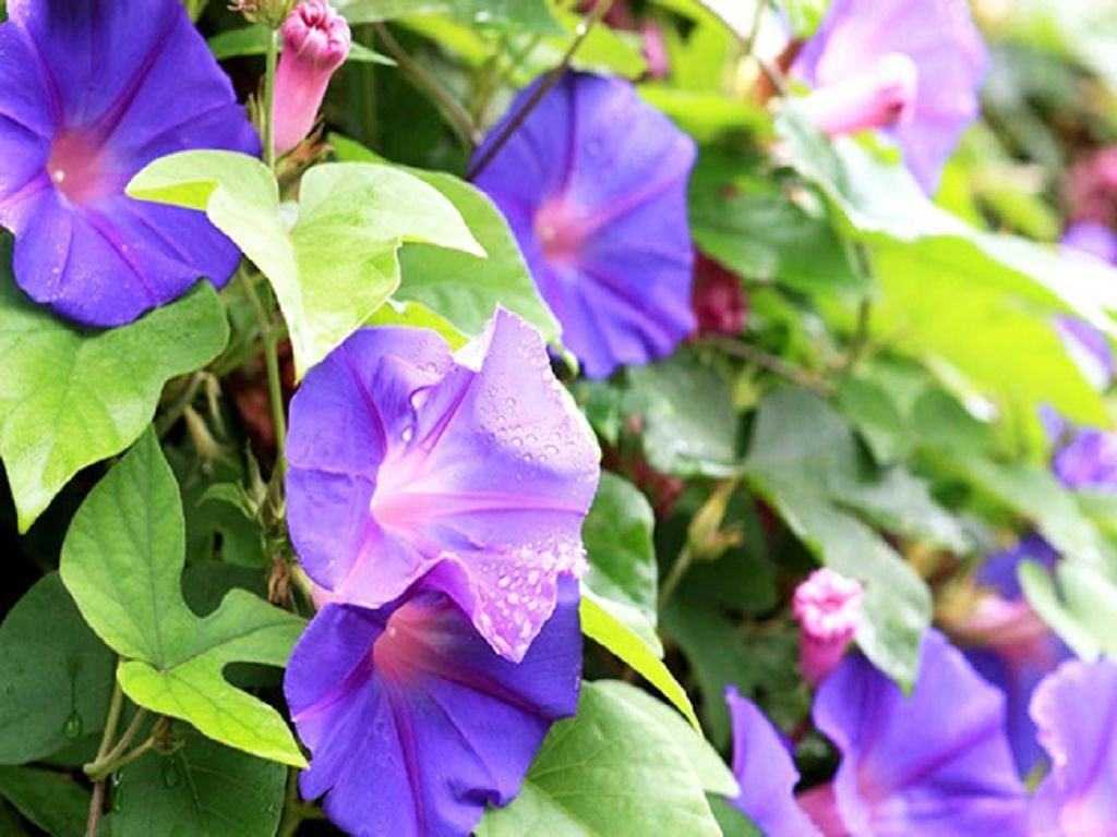 Красивая, изысканная лиана, привлекающая внимание очаровательными сине-фиолетовыми цветками. Ипомея прекрасно себя чувствует и в саду, и в городской квартире