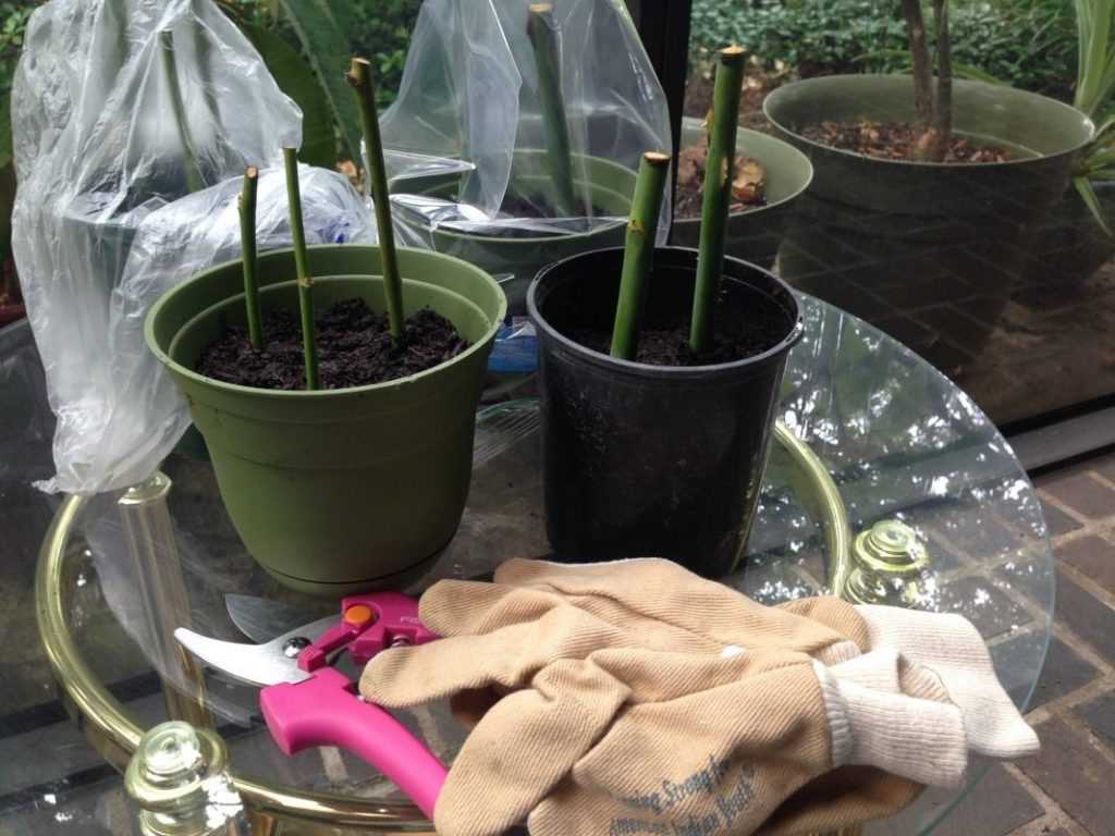 Почву готовят из речного крупнозернового песка или смеси земли с песком. Черенок опускают в землю не глубоко, примерно на 1 – 1,5 см и притаптывают ладонью, увлажняют. Затем горшок накрывают пленкой с отверстиями и оставляют в теплом светлом месте.